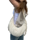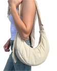 Стильна та практична модель у класичному бежевому виконанні, виготовлена з саржі. Завдяки м’якій основі з наповненням синтепоном і регульованому ремінцю сумку можна носити як на плечі, так і через тіло. Це зручний формат для щоденного використання й особливих виходів.Сумка достатньо містка: всередині є одне основне відділення та додаткове кишення на блискавці для дрібниць. Характеристики:- Матеріал: саржа (100% бавовна)