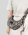 Стильна та практична модель у леопардовому виконанні, виготовлена з міцної тканини гобелен. Завдяки м’якій основі з наповненням синтепоном сумка добре тримає форму, залишаючись легкою та зручною у використанні. Регульований ремінь дозволяє носити її на плечі, через плече чи в руці.Сумка достатньо містка, щоб вмістити телефон, гаманець, ключі та інші дрібниці. Характеристики:- Матеріал: гобелен (80% бавовна, 20% поліестер)